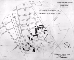 Plànol urbanístic que mostra el projecte de creixement del barri del Poble Nou l’any 1947. Font: Arxiu Comarcal de l’Alt Penedès